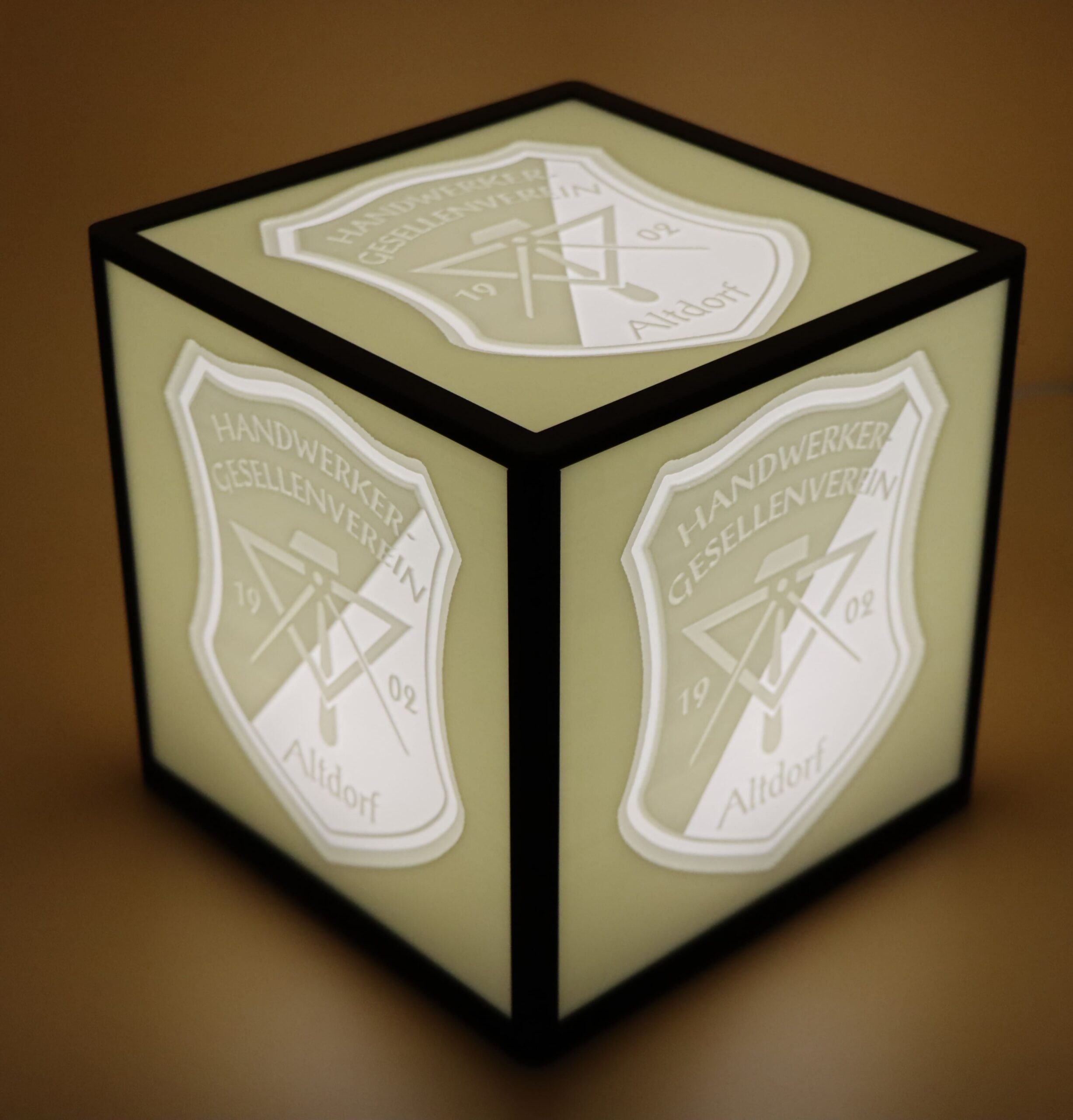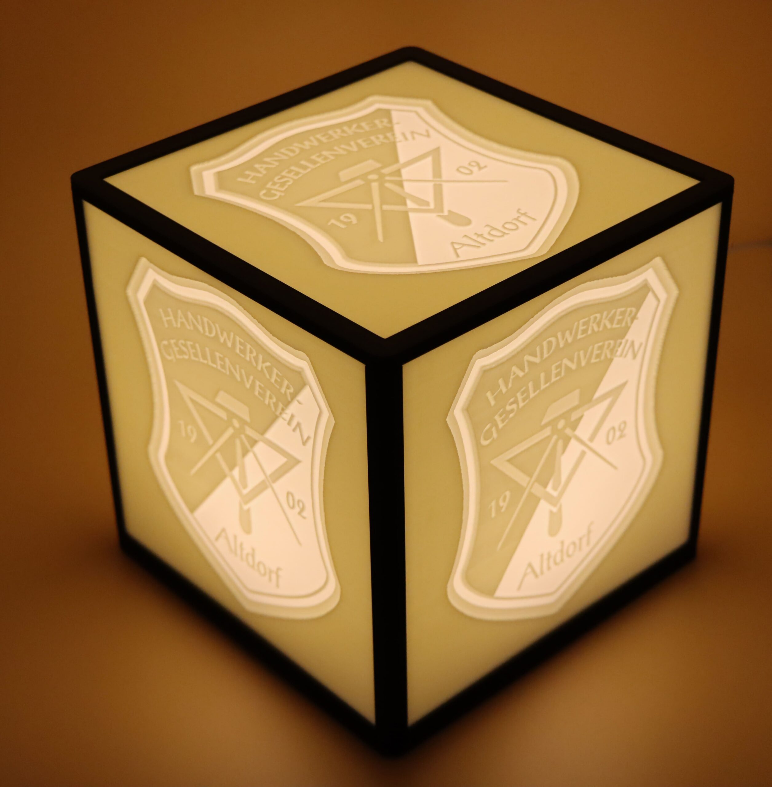 • 3D-gedruckter Würfel mit fünf Lithophane-Seiten