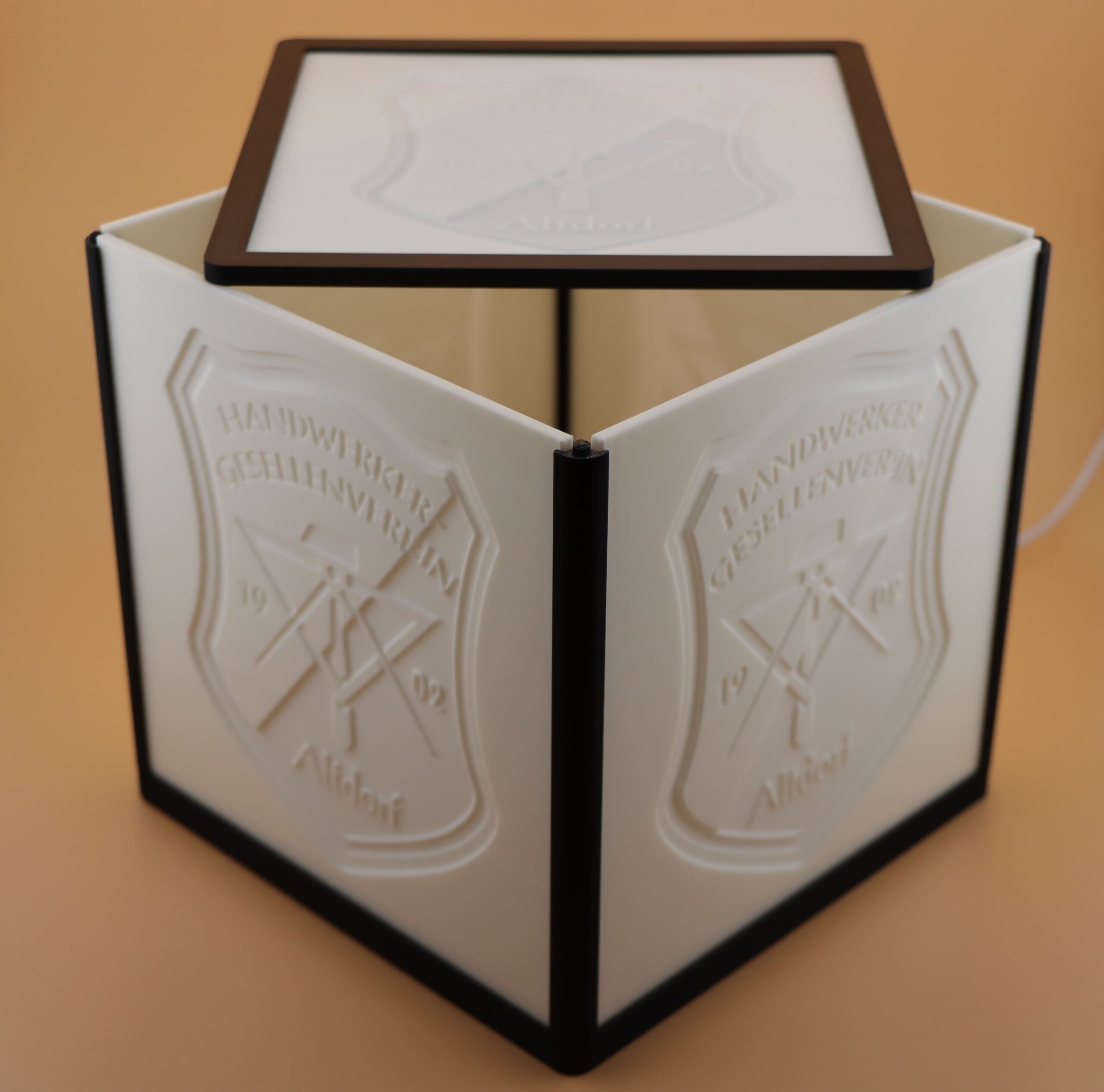 Würfel mit fünf großen Lithophanen und LED SpotWürfel mit fünf großen Lithophanen und LED Spot
